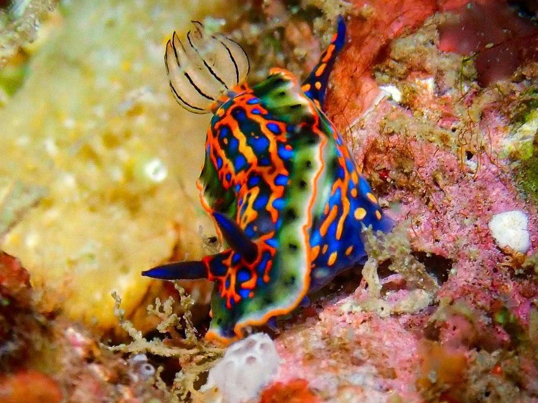 Más vida macro incluye las lenguas de flamenco, que son un tipo de caracol marino con manchas coloridas que actúan para ahuyentar a los depredadores. Ellos mismos son depredadores que se alimentan de corales blandos y pueden almacenar toxinas del coral para usarlas como mecanismo de defensa.